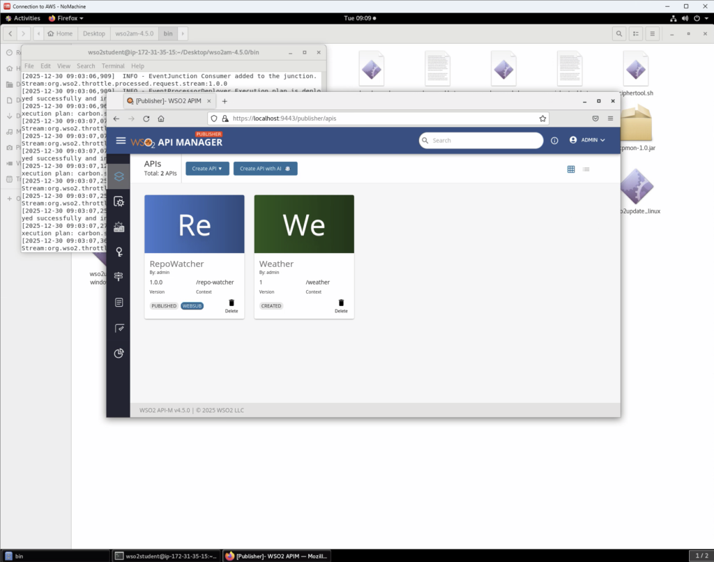 For WSO2 training we use an Amazon image running in frankfurt For the training of the API Manager and the Identity Server. Access to this environment is done via the NoMachine client that is either a download or can be used in a browser if downloading is not an option due to company policies.